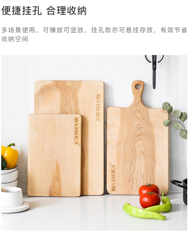 当前位置:首页 > 办公耗材-厨房设备-刀剪菜板 > MAJAICA家用大号枫木菜板多功能可挂墙手柄大号